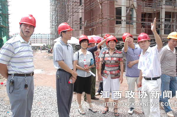 县政协副主席涂英(右4)率政协委员在南丰县国际花园建筑工地视察