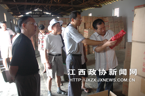 县政协主席李履才(右1)率政协委员在南丰县烟花爆炮经营有限公司鞭炮仓库视察