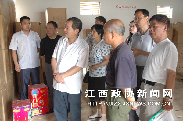 县政协主席李履才(右3)率政协委员在南丰县烟花爆炮经营有限公司烟花仓库视察