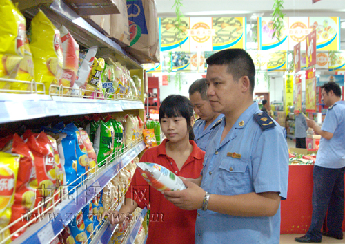 连日来,南丰县工商局组织人员对暑期儿童食品开展专项检查,对生产日期模糊、虚假认证标志及滥用添加剂的儿童食品立即查扣。(曹安庆 摄)
