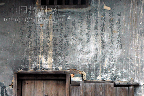 8月14日,文物普查人员在南丰县傅坊乡田陀村进行第三次全国文物普查时,发现一批红军反围剿时期的宣传标语、漫画,清晰可辨。其中一外墙上的“共产党十大政纲”最为醒目,有“推翻帝国主义在华统治;没收外国资本家企业和财产……”等内容。据县志记载,这是1931年红军转战闽赣时留下的。(黎兴旺 摄)