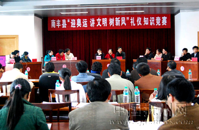 连日来,南丰在全县范围内广泛开展了“迎奥运讲文明树新风”礼仪知识竞赛,通过自下而上的竞赛活动,向广大群众普及了奥运基本知识和文明礼仪常识,为该县树立和谐新风、崇尚文明礼仪营造了良好的社会环境。