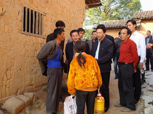 座谈会结束后,调研组一行在南丰县政协领导陪同下到莱溪乡敬老院走访五保供养对象,并且送上大米和食油,视察了他们的住处和厨房,菜地,医疗室;还走访了莱溪乡杨梅坑村农村低保户曾水亮、肖根平等。