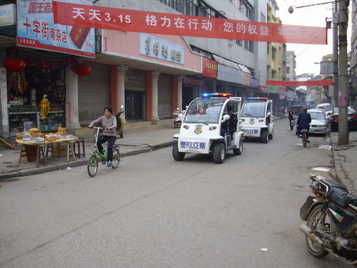 据警方介绍,南丰县公安局在今年4月投资9万余元为巡警大队增设两辆电瓶车,车上配备警灯、喊话器等装置,增强警方快速反应能力,群众可随时拦停这些车报警或求助。警方在不增加警力的同时缩短接处警时间,增加了巡逻的密度,成为桔都一道亮丽的风景线。
