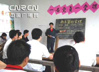 日前,在南丰县太源乡党员活动课堂上,乡农技站站长、党员吴剑平正在为群众讲授有关南丰蜜桔管理方面的技术知识。