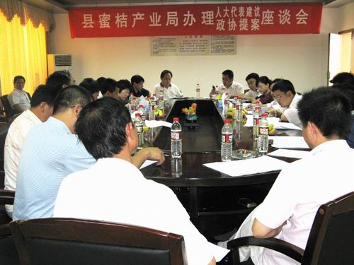 5月12日下午,南丰县蜜桔产业局召开了办理人大代表建议、政协提案座谈会,20多名人大代表、政协委员参加了座谈会。蜜桔产业局领导、科技专家与会人大代表、政协委员提出的就南丰蜜桔如何以科学发展观为指导,提高南丰蜜桔品质,拓宽市场销售渠道,加大产业链建设,抵御市场风险,促进农民增产增收等人大代表建议、政协委员提案进行面对面的交流和答复,提出了合理化建议和应对措施,深受人大代表、政协委员的欢迎。