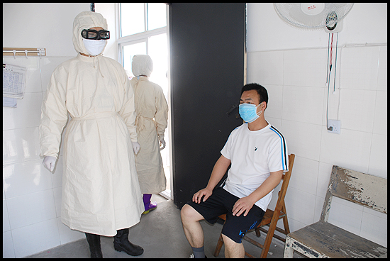 5月7日下午,南丰县人民医院120急救中心突然接到紧急电话,一名30多岁的男子刚从境外某地甲型H1N1流感疫情区域旅游回来,出现了发热、咳嗽、头痛等症状。该县人民医院启动应急预案,放射科、传染科的医生接到电话后,迅速穿好防化服,戴好防护口罩和防护镜等防护装备蓄势待诊,“患者”带到该县人民医院传染科隔离病房,测体温、抽血化验、摄片……,这是该县举行甲型H1N1流感防控演练的一个缩影。